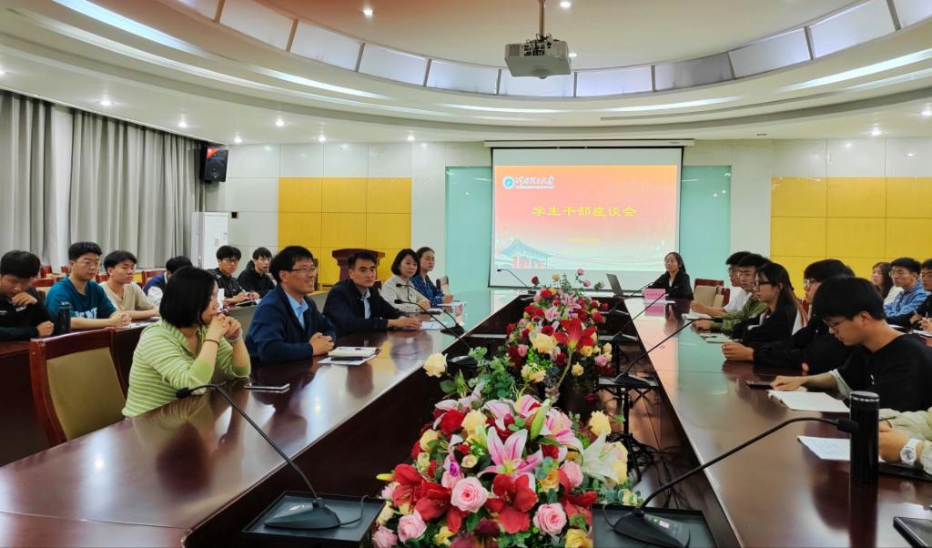 座谈会上,郭学鹏充分肯定了各学生组织在服务同学工作中取得的成绩,同时希望学生干部要发挥学院、老师与学生之间的桥梁纽带作用,树牢服务意识、引领意识、团队意识、大局意识、创新意识,处理好工作与学习、生活的关系,履行好学生干部的职责。针对宿舍安全问题,郭学鹏强调要强化宿舍安全责任,各学生干部应该以身作则,引导全院学生树立安全意识,号召大家以优秀文明宿舍为榜样,严守学校规章制度,共同营造安全、健康、舒适的学习和生活环境。学院各学生组织代表依次发言,对本学期已开展的活动进行汇报总结,针对日常生活、工作等方面遇到的问题提出困惑,老师们认真听取并给予了相对应的解决办法。最后,丰习才号召各级学生干部充分发挥模范带头作用,在感染同学、帮助同学、带动同学中提升自我,让自己真正成为连接学生与学校的桥梁与纽带。