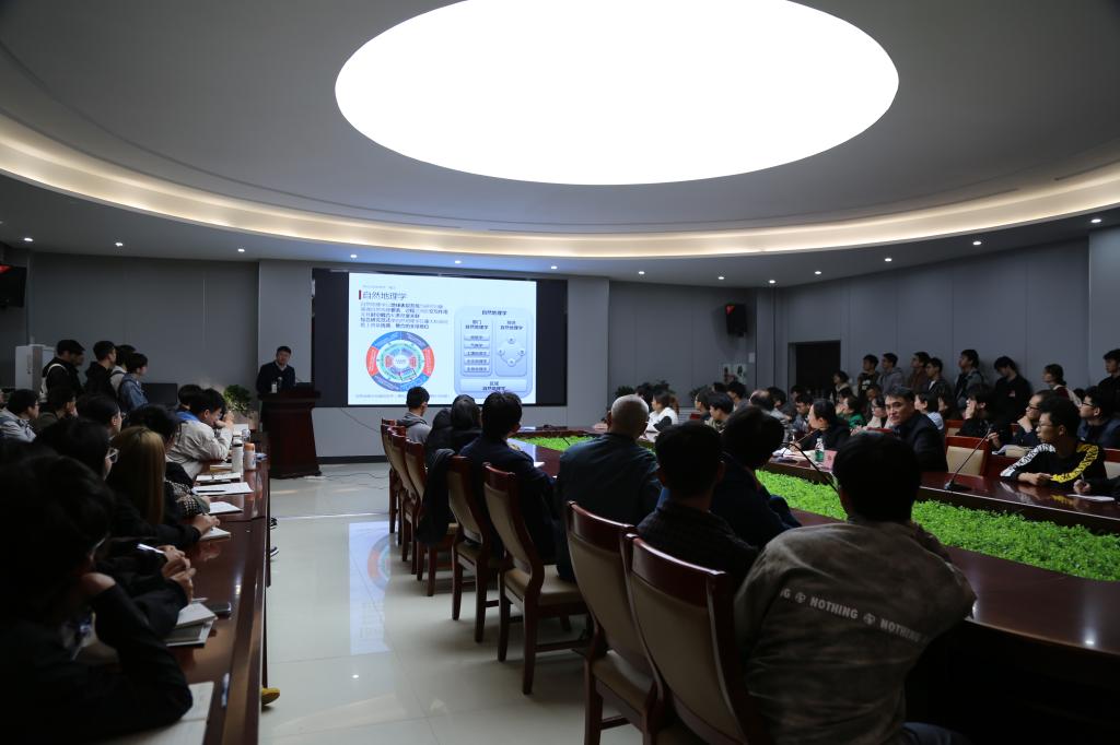 师生作学术讲座。彭建教授基于综合自然地理学视角,从空间集成概念内涵、阶段特征和前沿方向三个方面,深入浅出的阐述了综合自然地理学空间集成的理论方法及发展趋势,助力美丽中国建设,并分享了研究团队近年来取得的一系列研究成果。高江波研究员以北京房山试点为案例,以理论知识服务国家灾害风险防控为落脚点,介绍了自然灾害风险概念与评估框架,减灾能力评估模型,单灾种、多灾种灾害风险区划与集成技术与方法,灾害防治精细化对策方案等方面的内容,特别强调,要把研究工作与人才培养连接起来,夯实理论基础,服务实际应用,形成复合型创新人才培养体系。自由讨论环节,彭教授和高研究员认真细致地解答了师生的困惑,并与师生就报告内容进行了热烈讨论,现场气氛活跃。