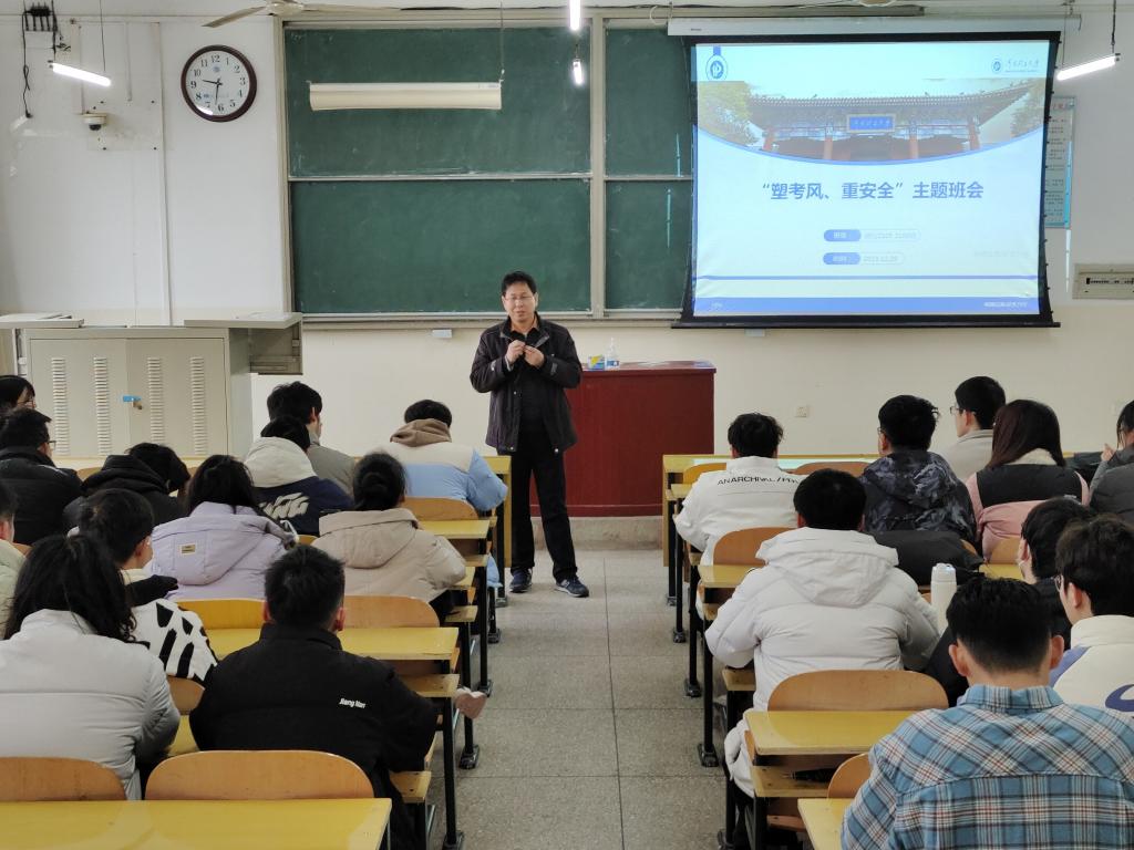 会上,副院长柴华彬结合自身经历阐述班级的班风、班纪对学生大学期间成长的重要性,强调同学们应以饱满的精神状态投入到期末考试复习中,遵守考场纪律,发扬诚信考试风气。随后,研管办主任谢玉娟再次提醒同学们切不可有侥幸心理,杜绝作弊行为,提醒学生要增强人身安全意识、提升自我保护能力,谨防各类诈骗行为。最后,班主任吴喜芳对本次主题班会进行总结,并倡导大家走出宿舍舒适区,提醒同学们加强身体锻炼,自律自强,提高学习效率;教育引导同学们要互帮互助,培养优良“班风、学风、考风”。